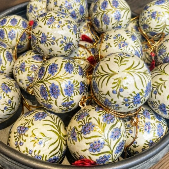 Smuk håndmalet julekugle fra Kashmir i nord Indien.