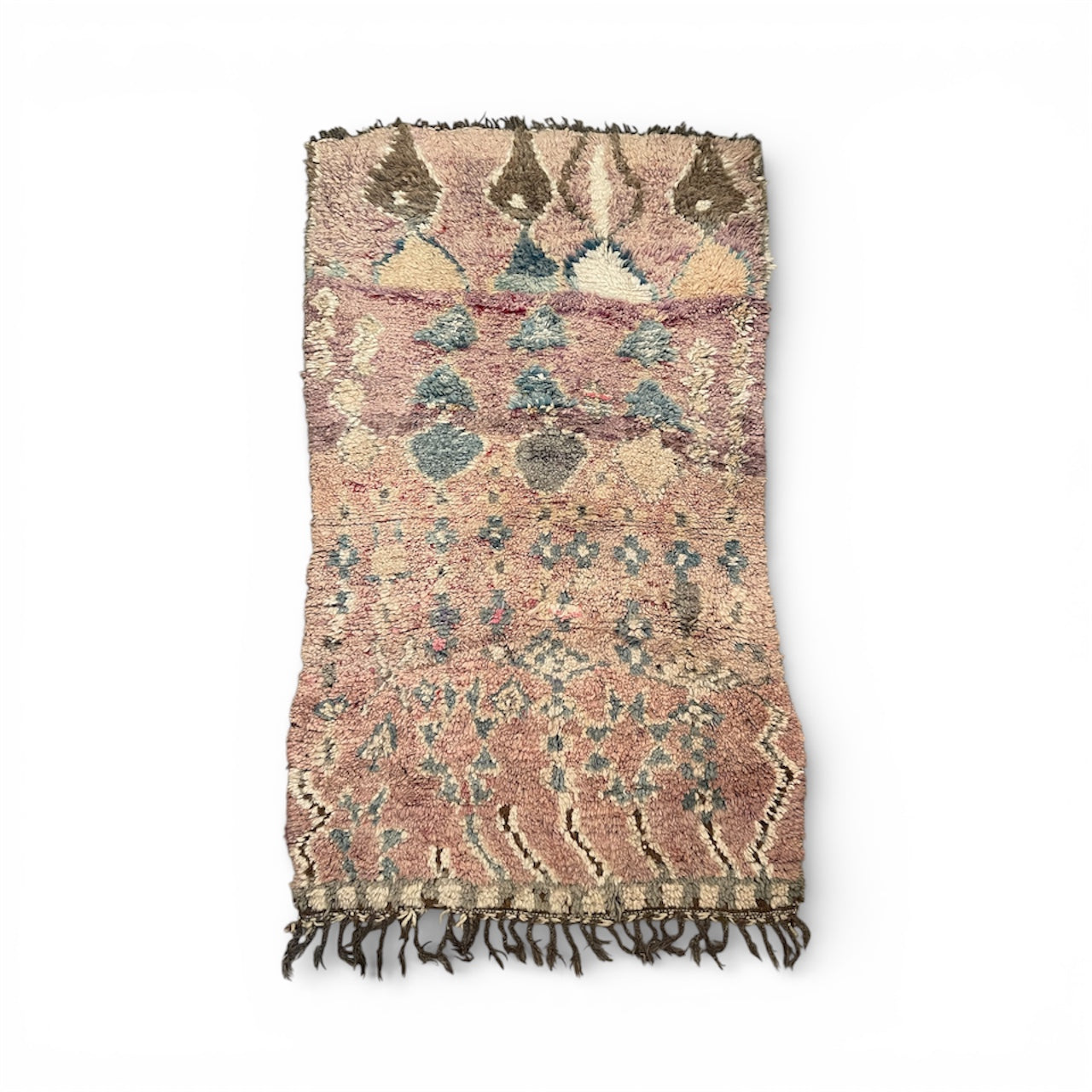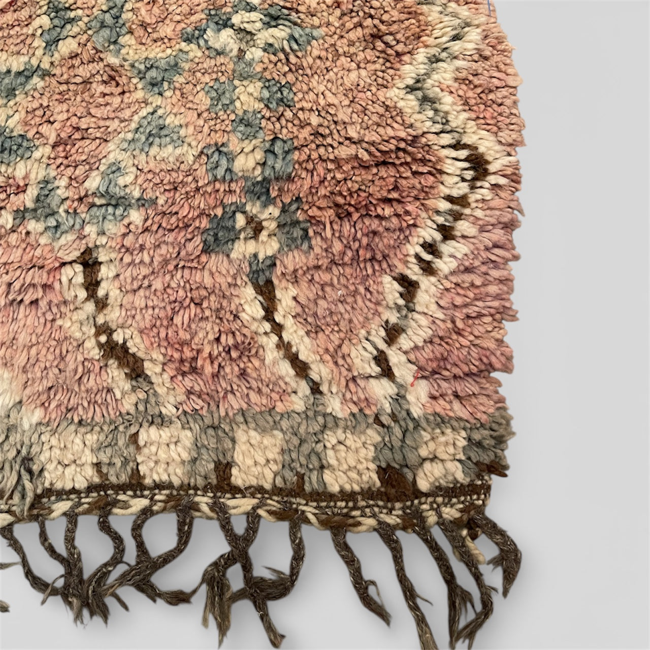 Marokkansk vintage uld gulvtæppe håndvævet af berber kvinder i Atlasbjergene.
