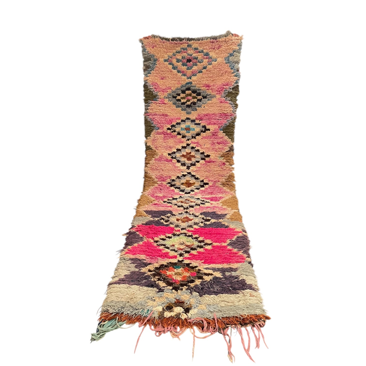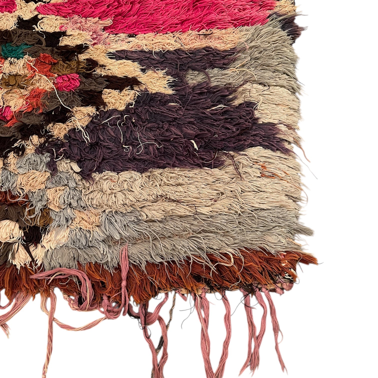 Marokkansk vintage uld gulvtæppe håndvævet af berber kvinder i Atlasbjergene.