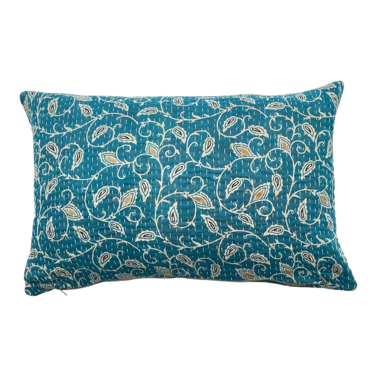 Håndlavet sari pudebetræk med kantha-syninger