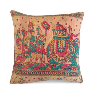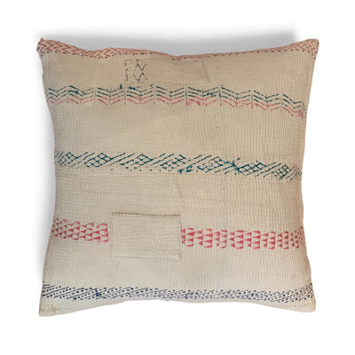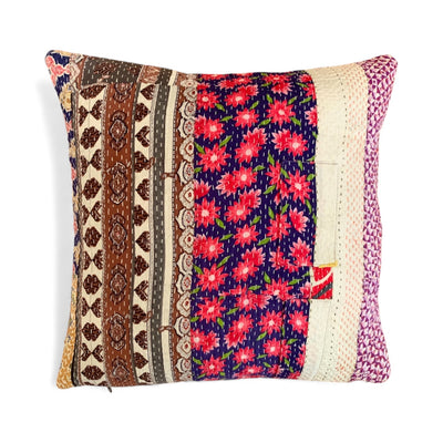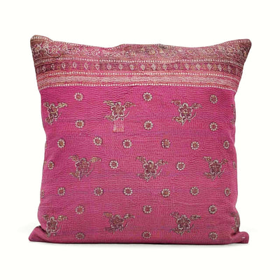 Giv dit hjem et personligt præg med vores unikke sari pudebetræk, lavet af upcyclede indiske sarier. Hver pude er håndlavet med små charmerende detaljer som lapper og reparationer, der understøtter dens historie og karakter. De smukke kantha-syninger, en traditionel indisk broderiteknik, giver hvert betræk ekstra tekstur og autentisk skønhed.