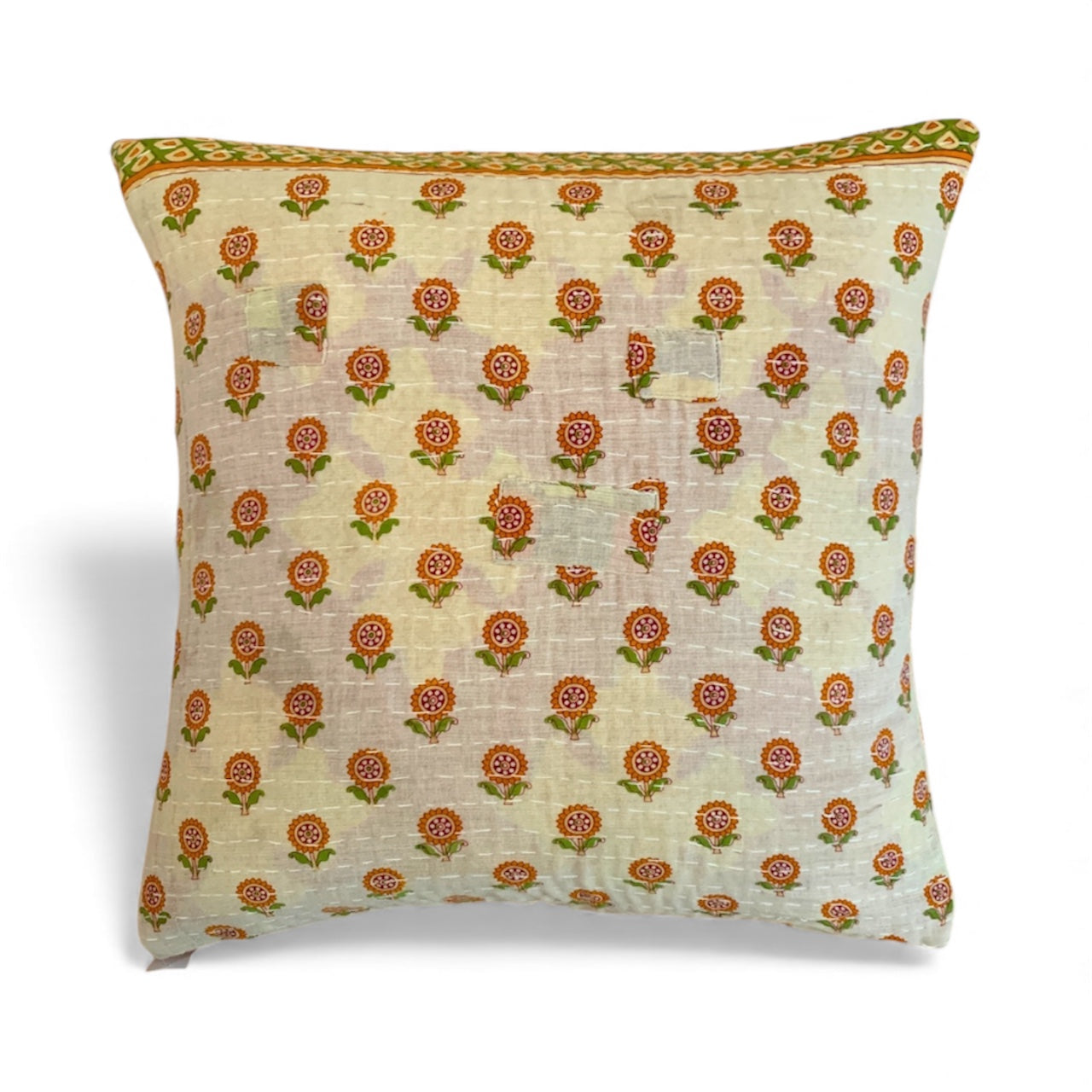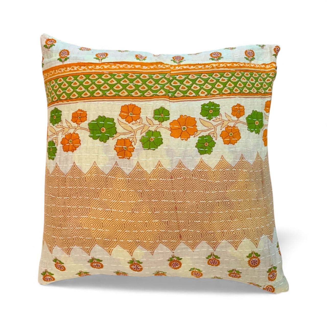 Giv dit hjem et personligt præg med vores unikke sari pudebetræk, lavet af upcyclede indiske sarier. Hver pude er håndlavet med små charmerende detaljer som lapper og reparationer, der understøtter dens historie og karakter. De smukke kantha-syninger, en traditionel indisk broderiteknik, giver hvert betræk ekstra tekstur og autentisk skønhed.