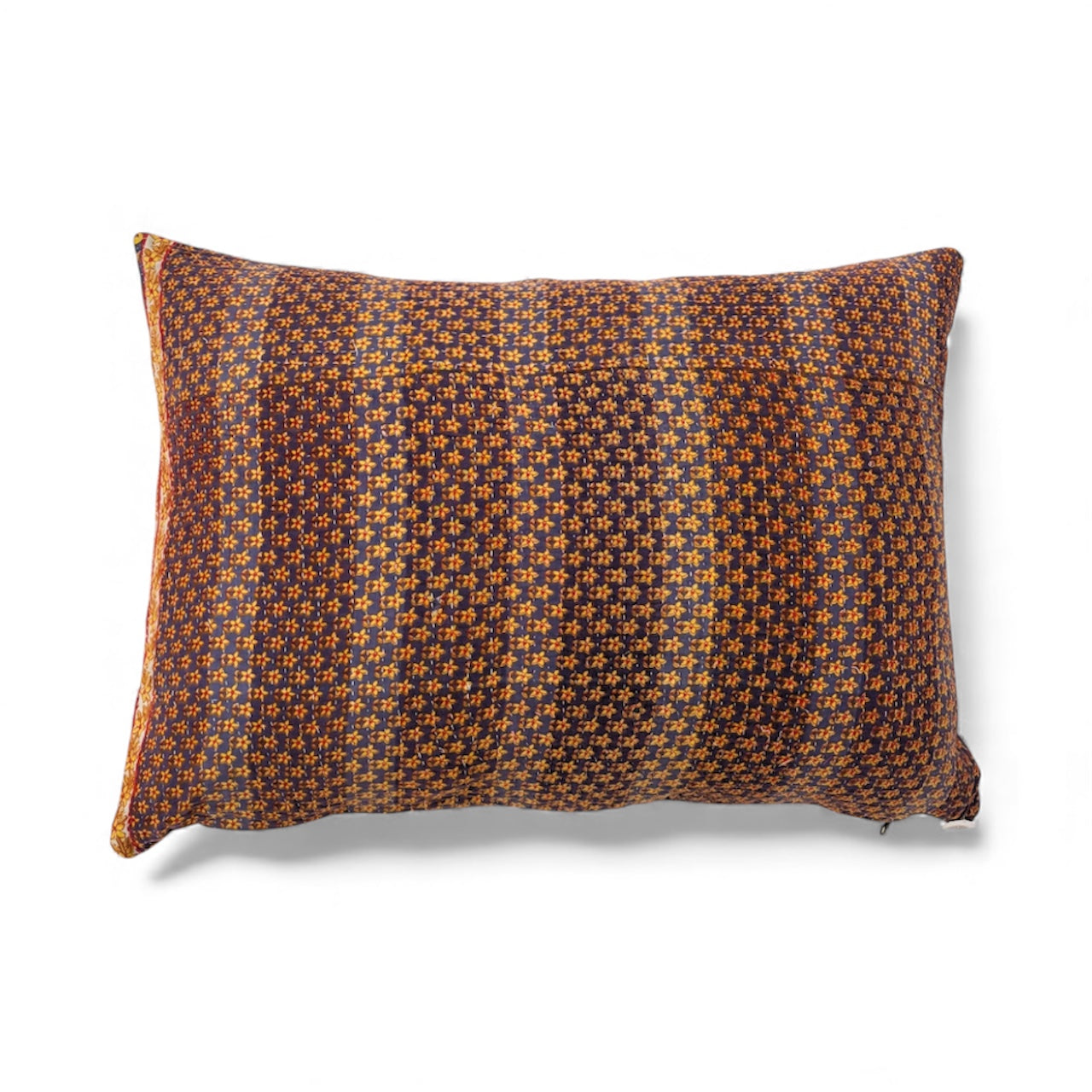 Giv dit hjem et personligt præg med vores unikke sari pudebetræk, lavet af upcyclede indiske sarier. Hver pude er håndlavet med små charmerende detaljer som lapper og reparationer, der understøtter dens historie og karakter. De smukke kantha-syninger, en traditionel indisk broderiteknik, giver hvert betræk ekstra tekstur og autentisk skønhed.