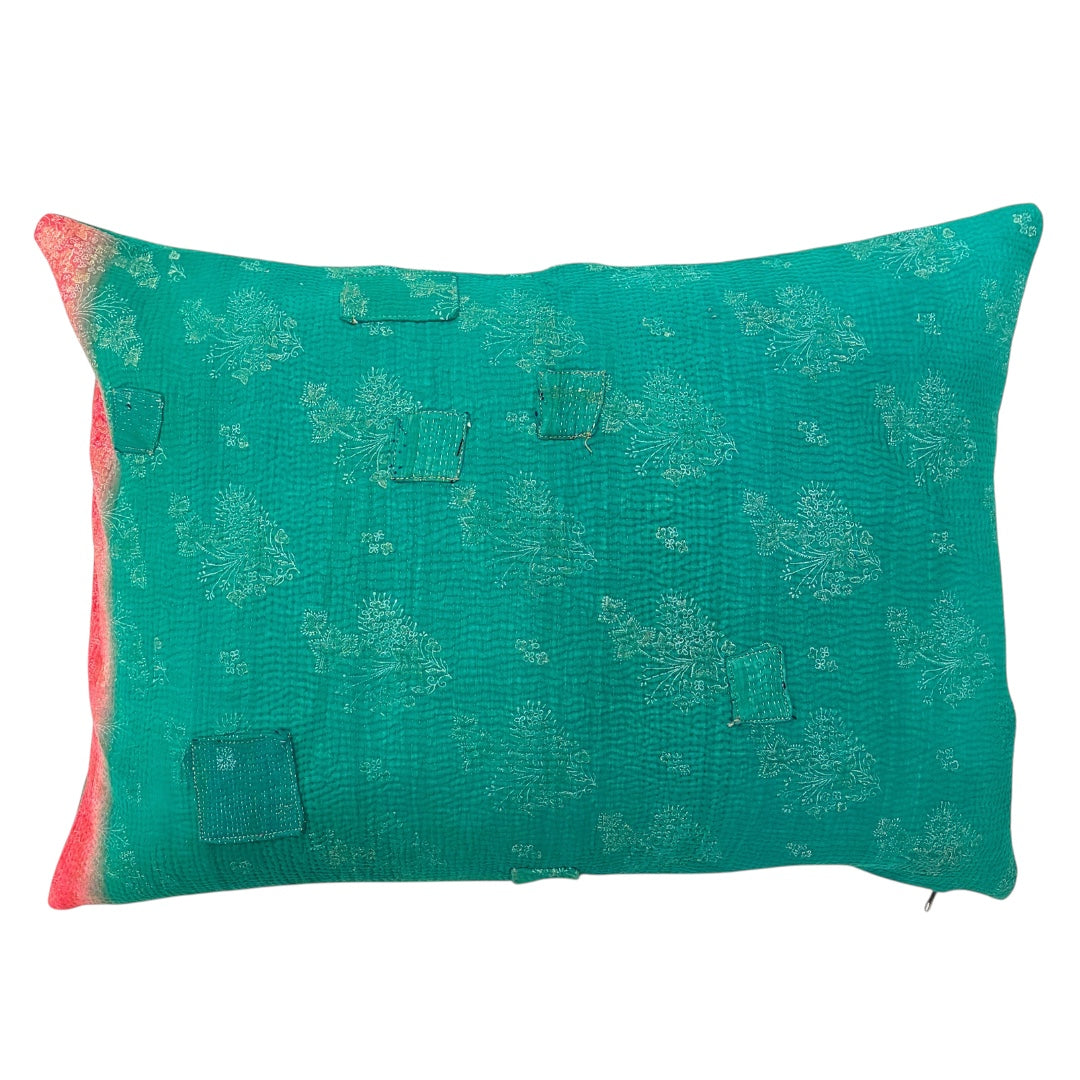 Håndlavet sari pudebetræk med kantha-syninger