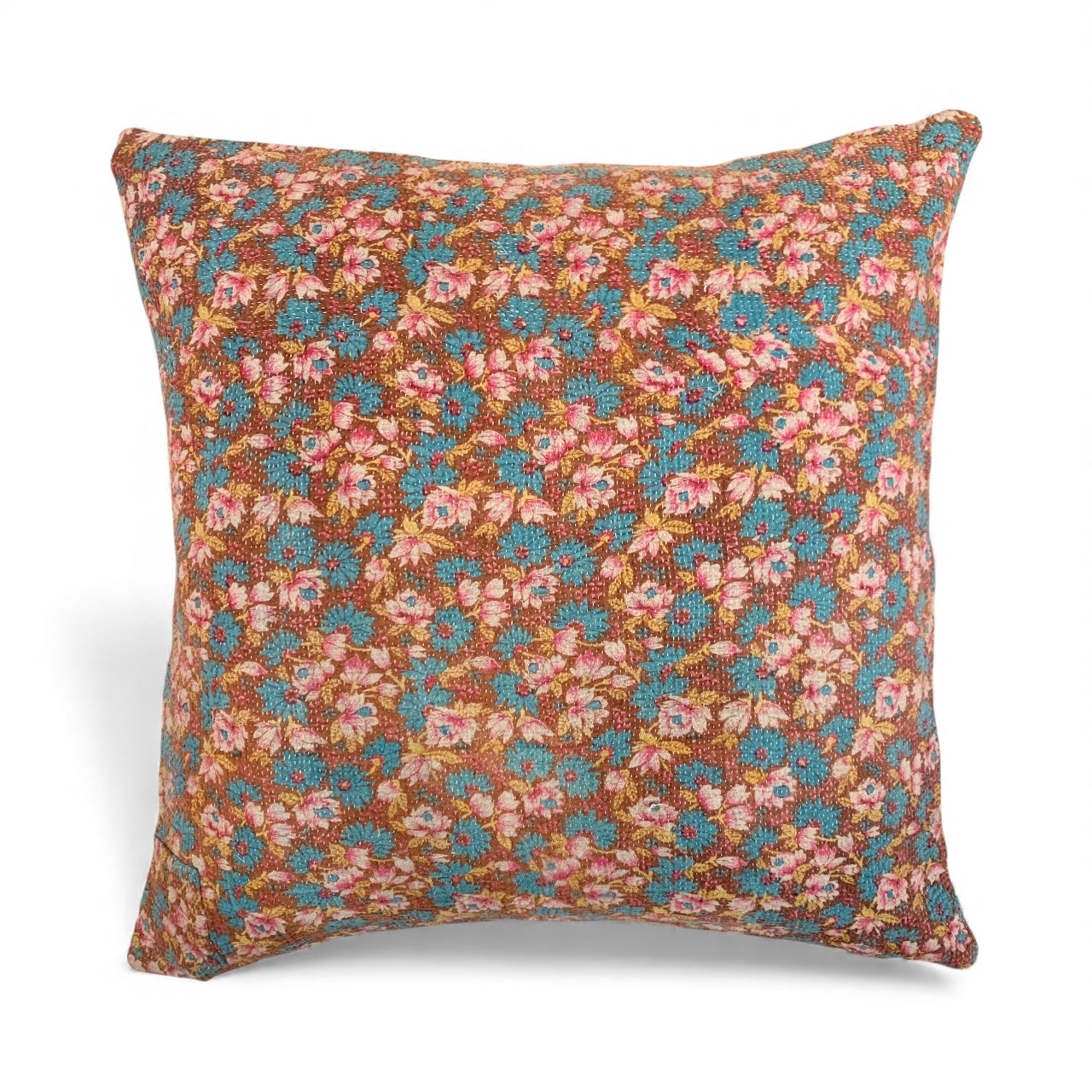 Giv dit hjem et personligt præg med vores unikke sari pudebetræk, lavet af upcyclede indiske sarier. Hver pude er håndlavet med små charmerende detaljer som lapper og reparationer, der understøtter dens historie og karakter. De smukke kantha-syninger, en traditionel indisk broderiteknik, giver hvert betræk ekstra tekstur og autentisk skønhed.
