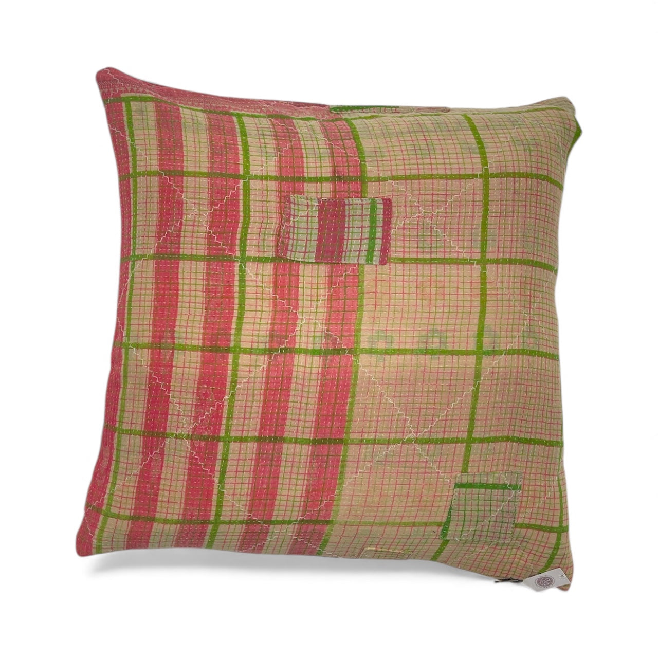Giv dit hjem et personligt præg med vores unikke sari pudebetræk, lavet af upcyclede indiske sarier. Hver pude er håndlavet med små charmerende detaljer som lapper og reparationer, der understøtter dens historie og karakter. De smukke kantha-syninger, en traditionel indisk broderiteknik, giver hvert betræk ekstra tekstur og autentisk skønhed.