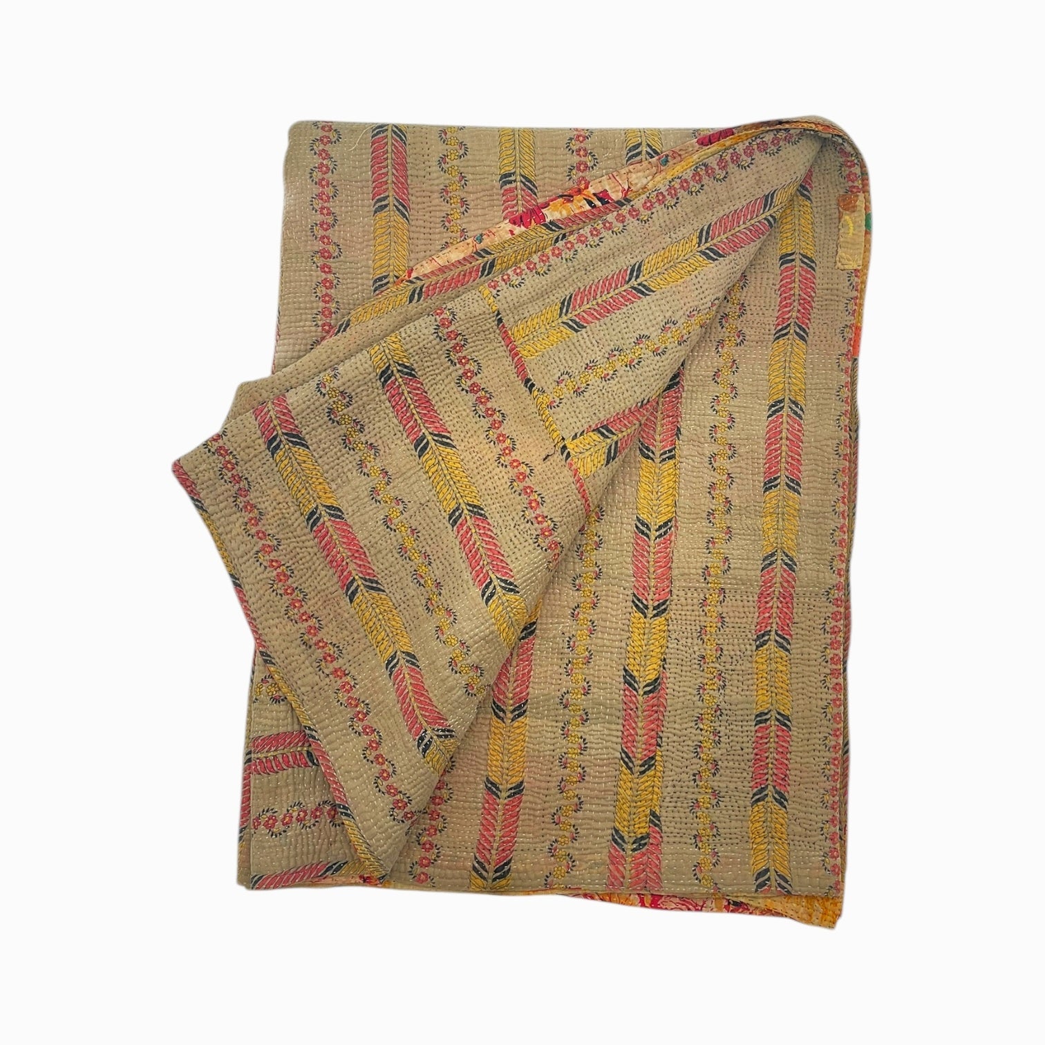 Sari Kantha tæppe i de skønneste farver og mønstre er det rette valg til dig, der ønsker at tilføje lidt ekstra farver, mønstre og liv til dit hjem.