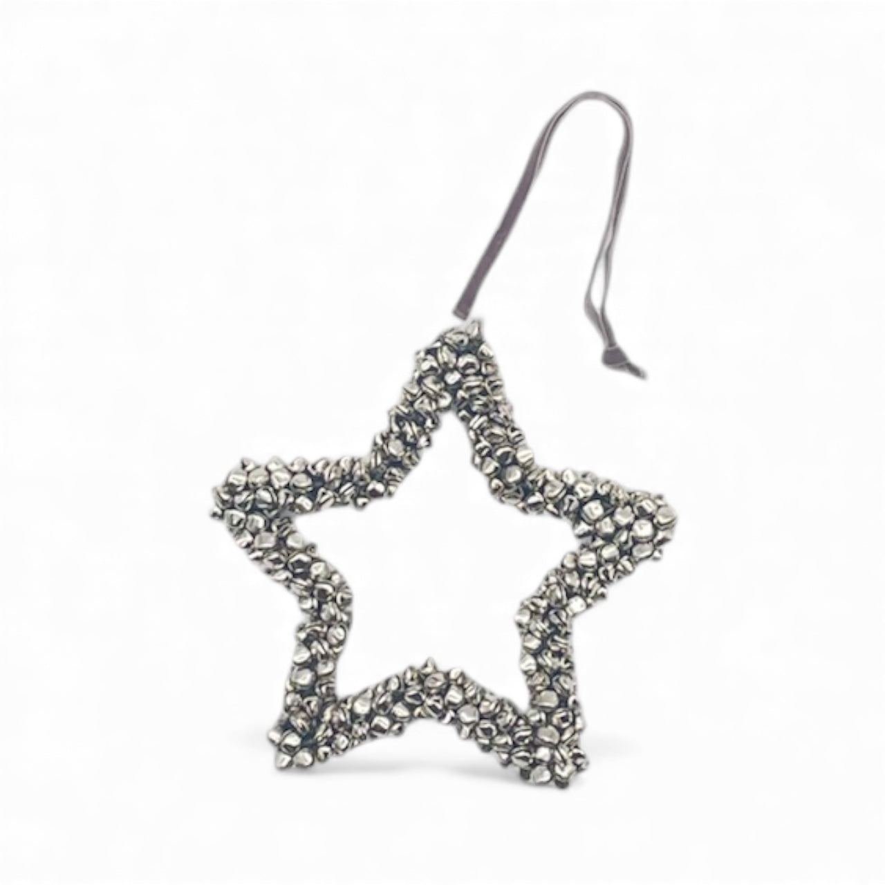 Håndlavet indisk julestjerne med små indiske "sølv" klokker. Hænger i et smukt velour bånd i en støvet lilla farve.