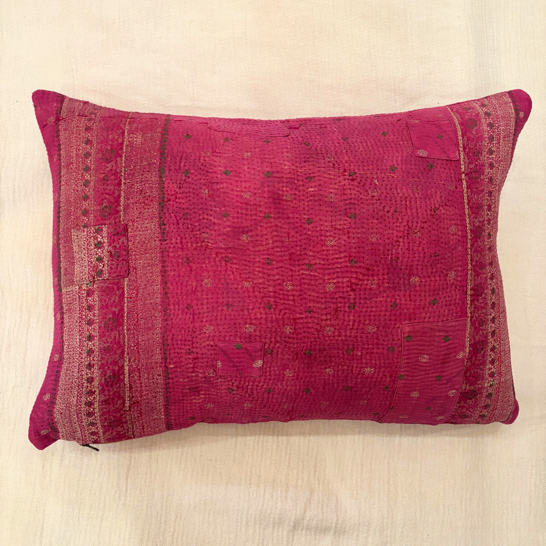 Giv dit hjem et personligt præg med vores unikke sari pudebetræk, lavet af upcyclede indiske sarier. Hver pude er håndlavet med små charmerende detaljer som lapper og reparationer, der understøtter dens historie og karakter. De smukke kantha-syninger, en traditionel indisk broderiteknik, giver hvert betræk ekstra tekstur og autentisk skønhed.