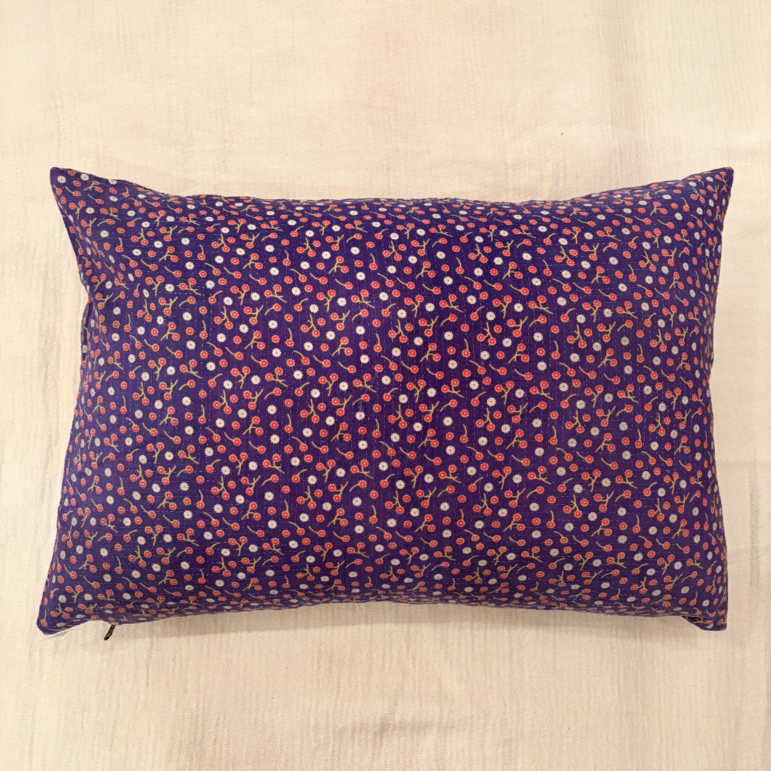 Giv dit hjem et personligt præg med vores unikke sari pudebetræk, lavet af upcyclede indiske sarier. Hver pude er håndlavet med små charmerende detaljer som lapper og reparationer, der understøtter dens historie og karakter. De smukke kantha-syninger, en traditionel indisk broderiteknik, giver hvert betræk ekstra tekstur og autentisk skønhed.